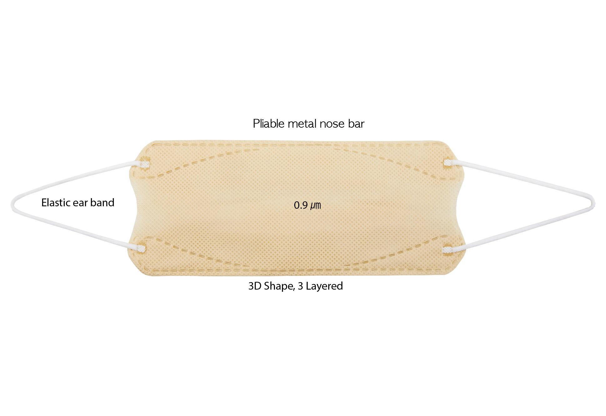 · 3 Layer with High Filtration (0.8~0.9 µm) Average size of the droplet is 5 µm. (Pollen 20 µm.) Don’t worry about infections through droplets.